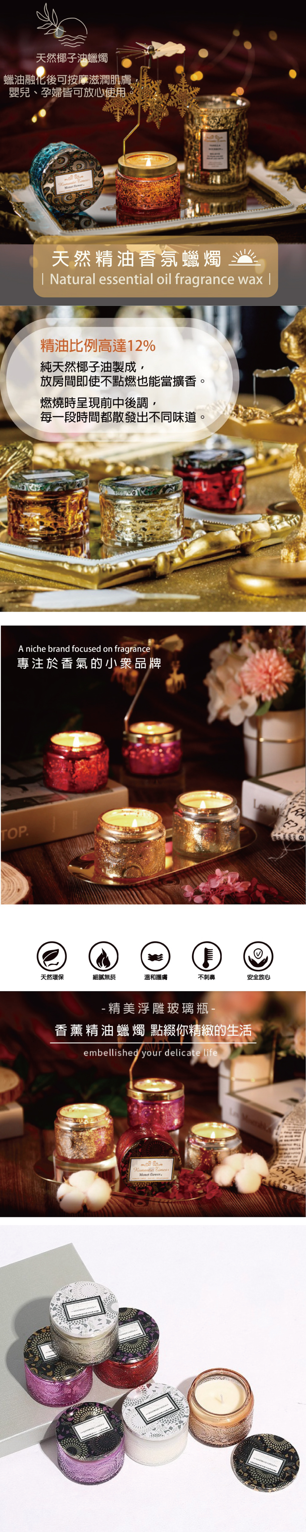 天然椰子油蠟燭燃燒後不會產生甲苯或其他對人類有害物質, 即使家中有小朋友或長者都可以放心使用;點燃蠟燭,享受視覺與香氛的氣息,來場與自己的心靈對話!