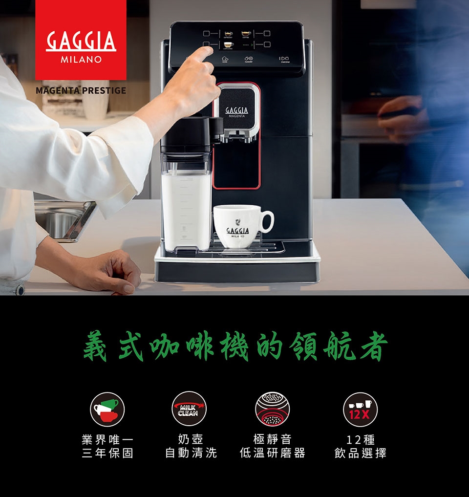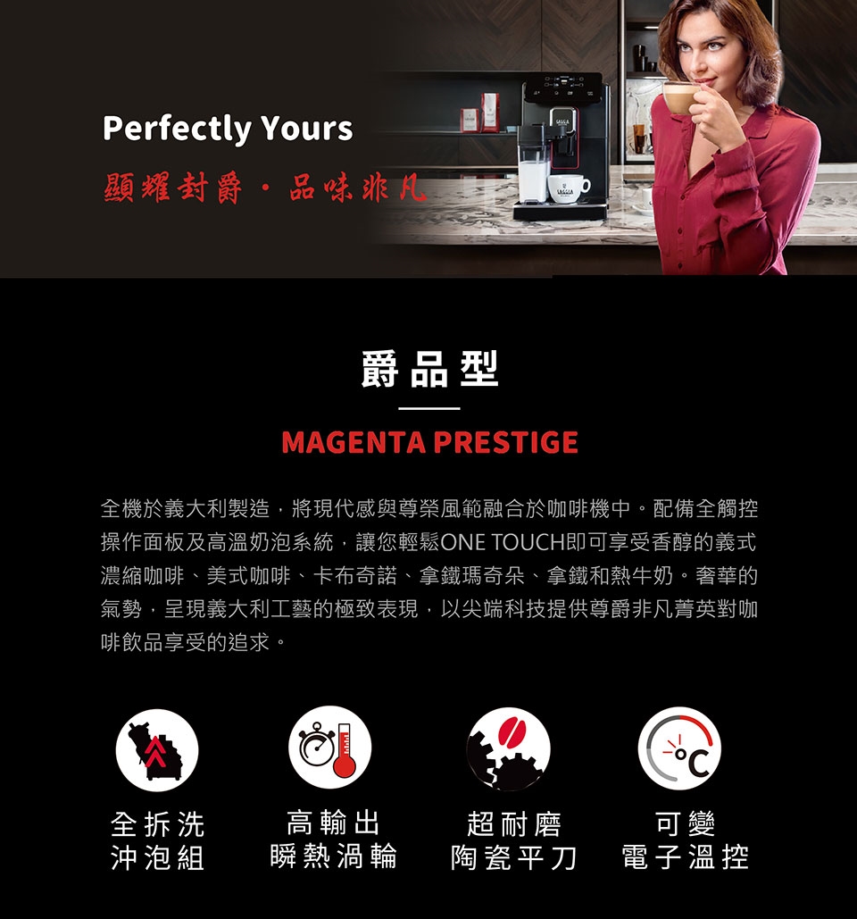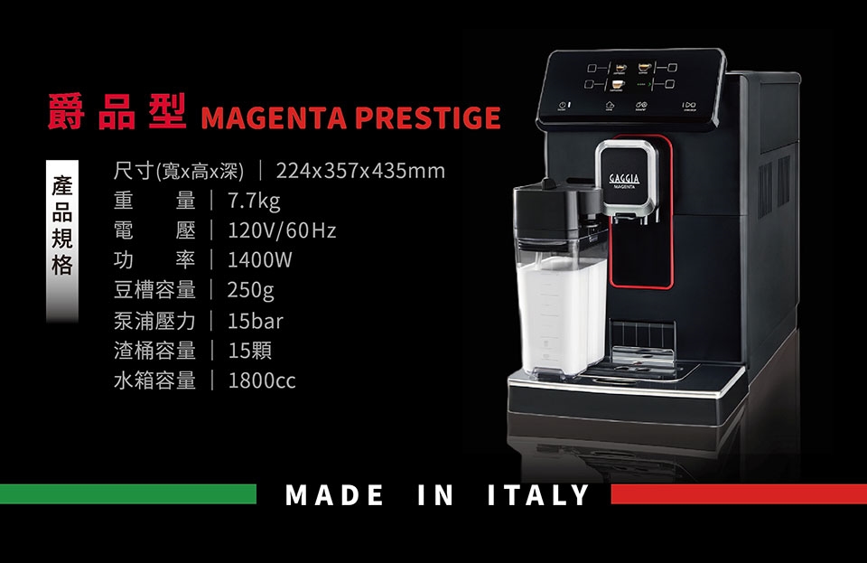 ★全機於義大利製造,將現代感與尊榮風範融合於咖啡機中。