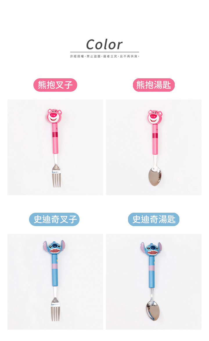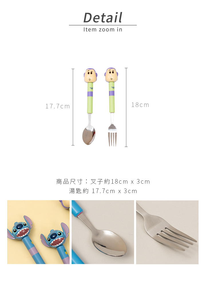 商品款式:熊抱湯匙/熊抱叉子/三眼湯匙/三眼叉子/史迪奇湯匙/史迪奇叉子/巴斯湯匙/巴斯叉子