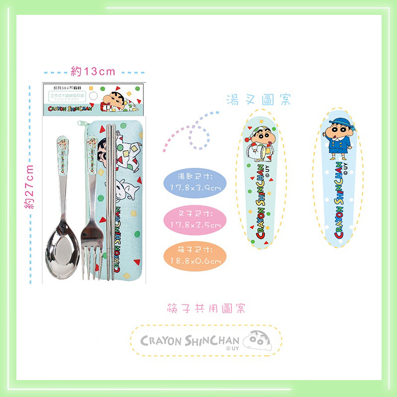 27 x 13 cm (本體)、20.5 x 7 cm (潛水布)、18.8 cm (筷子)、17.8 cm (叉子)、17.8 cm (湯匙)