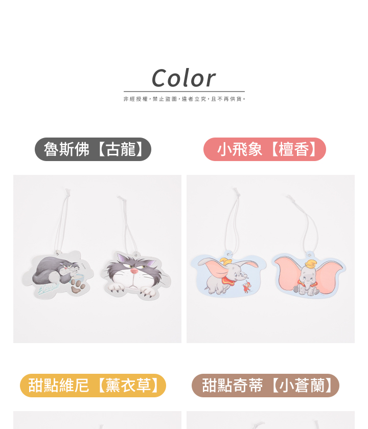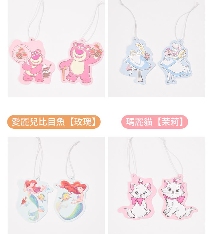 愛麗兒比目魚【玫瑰】/愛麗絲【桂花】/瑪麗貓【茉莉】/小飛象【檀香】/魯斯佛【古龍】